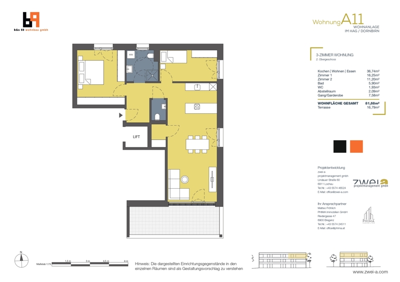Die Wohnanlage im Hag, bestehend aus zwei Baukörpern und einer gemeinsamen Tiefgarage, ist nach Süden bzw. Westen ausgerichtet. Mit insgesamt 19 Wohneinheiten, verteilt auf zehn Einheiten im Haus A und neun Einheiten im Haus B, wird hier der Traum des Eigenheims in Zentrumsnähe wahr.