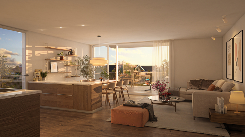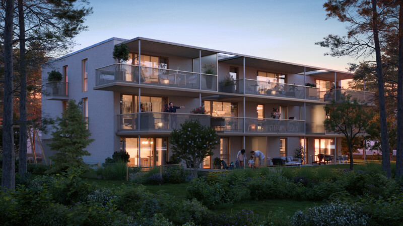 Die vom Harder Architekturbüro Früh geplante Wohnanlage verspricht stilvolles und zeitgemäßes Wohnen in ruhiger Lage am Ortsrand von Hard. Die durchdachten Grundrisse der 2-, 3- und 4-Zimmer Wohnungen bieten Platz für Alleinstehende als auch für die junge Familie. Großzügige Terrassen und Gärten laden zu entspannten Sommertagen ein. Ergänzt wir die Wohnanlage mit einem Vorplatz im östlichen Eingangsbereich und einem ansprechend gestalteten Außenbereich mit Spiel- und Begegnungsflächen für jung und alt. Ein Personenaufzug garantiert die Barrierefreiheit in die einzelnen Wohnungen sowie den PKW-Abstellplätzen im Untergeschoss.