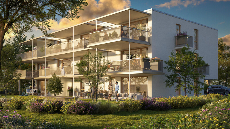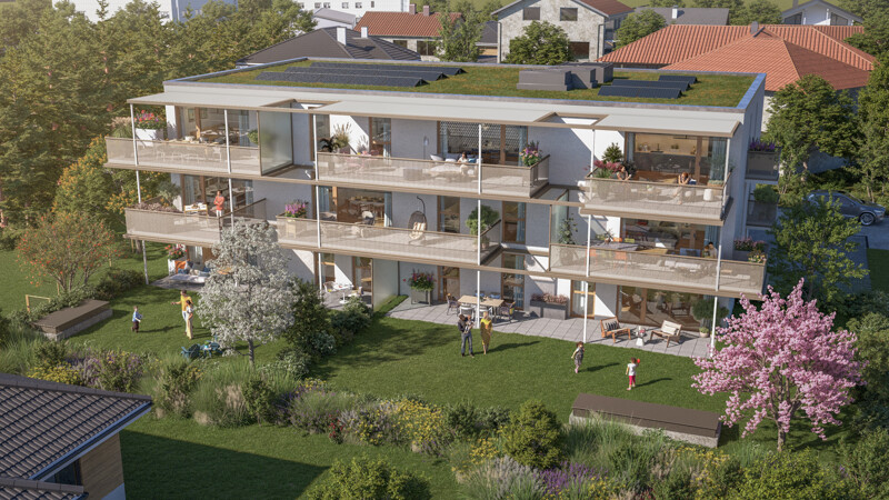 Die vom Harder Architekturbüro Früh geplante Wohnanlage verspricht stilvolles und zeitgemäßes Wohnen in ruhiger Lage am Ortsrand von Hard. Die durchdachten Grundrisse der 2-, 3- und 4-Zimmer Wohnungen bieten Platz für Alleinstehende als auch für die junge Familie. Großzügige Terrassen und Gärten laden zu entspannten Sommertagen ein. Ergänzt wir die Wohnanlage mit einem Vorplatz im östlichen Eingangsbereich und einem ansprechend gestalteten Außenbereich mit Spiel- und Begegnungsflächen für jung und alt. Ein Personenaufzug garantiert die Barrierefreiheit in die einzelnen Wohnungen sowie den PKW-Abstellplätzen im Untergeschoss.