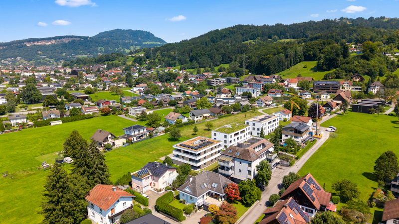Elegantes Design und hochwertige Architektur umgesetzt von Architekt Clemens Huber versprechen ein zeitgemäßes Wohnen im Süden von Wolfurt.